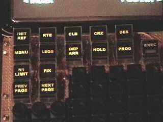 INIT/REFページを表示中。CDUから、 VOR局をコードで設定したり、LNAVルートを設定することも可能。
