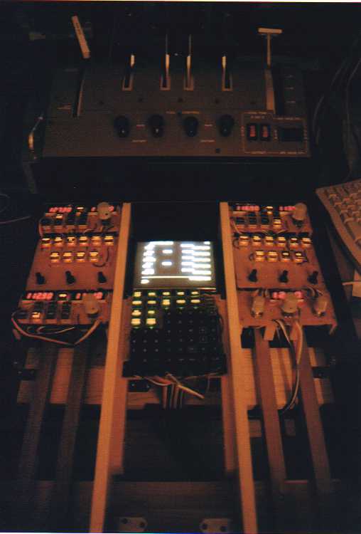 3台のCOMパネルとXPDRパネルはすでに装備され、稼動している。中央には5インチCRTを含んだCDUがある。.